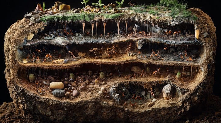 Every ant nest is more than just a shelter; it is an underground laboratory where microbial reactions constantly reshape the soil’s chemistry. The tunnels, chambers, and ventilation systems that ants create don’t just serve the colony they alter temperature, humidity, and oxygen levels, creating microhabitats ideal for microbial growth. Scientists have discovered that microbial life beneath the ant nest often surpasses that of surrounding soil in both richness and activity.